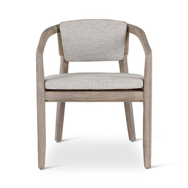 ELISA armstoel teak grey, beige weving incl kussens beige