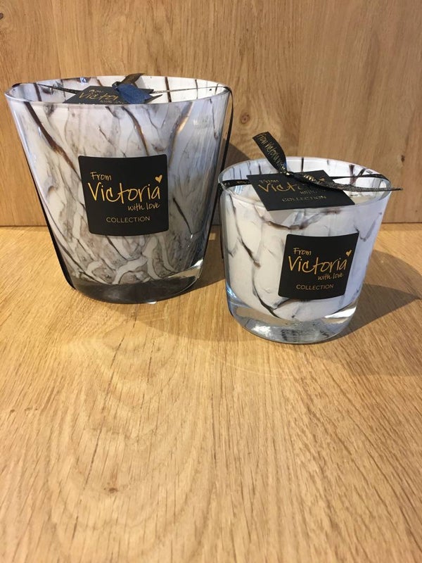 De "Marble white" geurkaars van "Victoria with Love" geeft vele uren gezelligheid in huis. Niet enkel dankzij de mooie afwerking, maar ook door de etherische geuren die uw kaars vrijgeeft tijdens het branden en het gezellige licht dat uw ruimte vult dankzij de meerdere wieken.