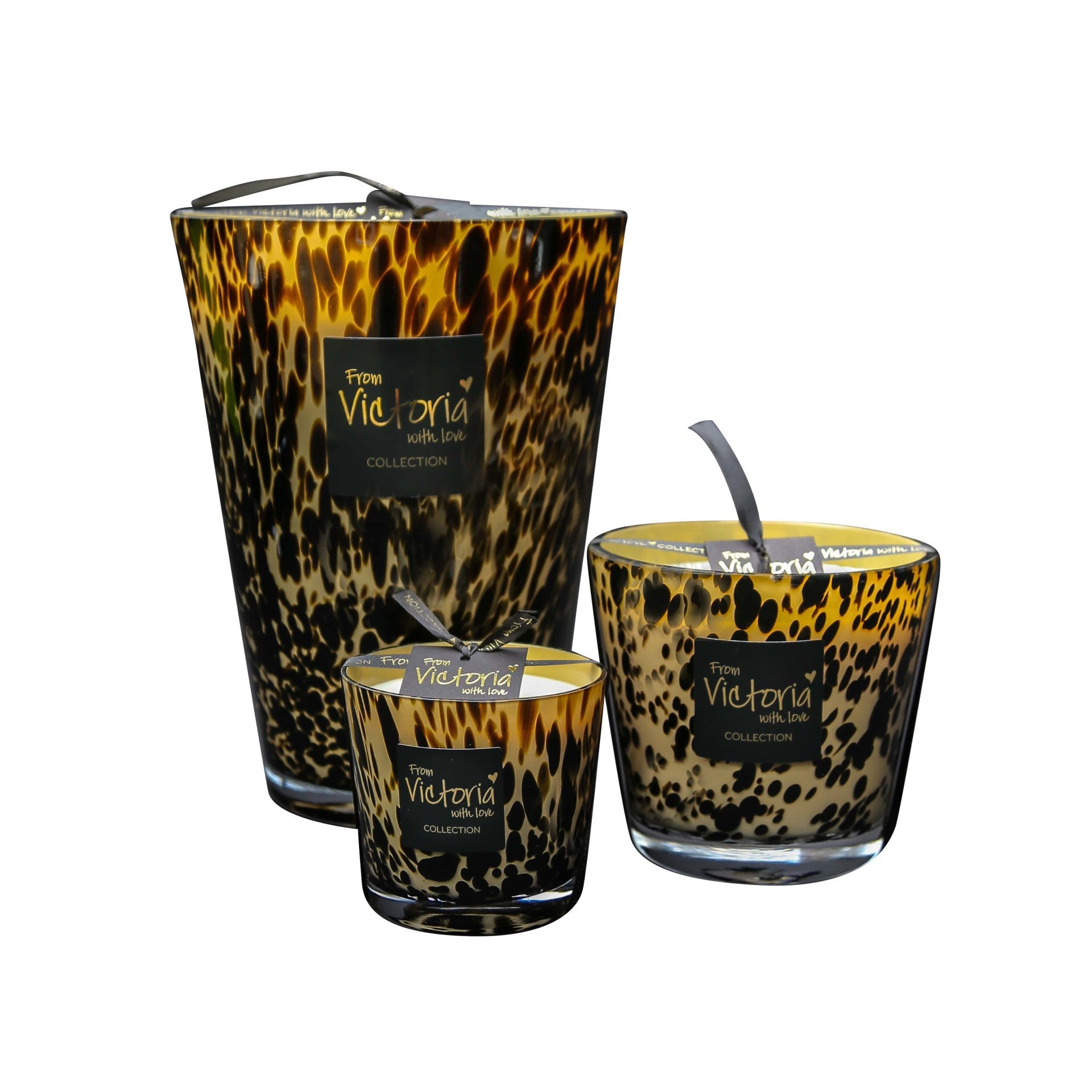 De "Dotted Camel" geurkaars van "Victoria with Love" geeft vele uren gezelligheid in huis. Niet enkel dankzij de mooie afwerking in zwart en beige gekleurd glas, maar ook door de etherische geuren die uw kaars vrijgeeft tijdens het branden en het gezellige licht dat uw ruimte vult dankzij de meerdere wieken.