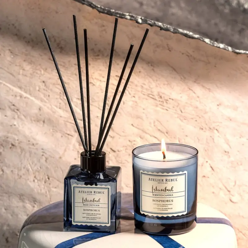 Deze verfijnde samenstelling van zeezout, Turkse roos en blauwe dennen vangt de ziel van de beroemde waterweg van Istanbul. Vervaardigd met premium ingrediënten, zorgt het voor een langdurige geurervaring. Het elegante design voegt ook een extra stijlvol element toe aan iedere kamer. Laat de betoverende "İstanbul Bosphorus" u meenemen op een geuravontuur, die uw dagelijks leven verrijkt met een mix van elegantie en geur.