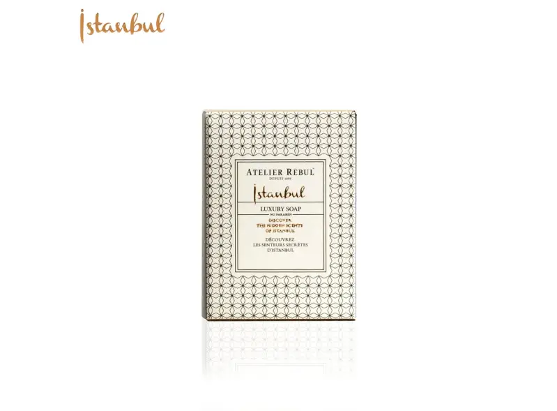De Atelier Rebul Istanbul Handzeep 30gr is een luxe mini zeep met de iconische geur van Istanbul. Perfect als gastenzeepje, reisaccessoire of klein geschenk. Deze zeep reinigt de huid op milde wijze en laat een subtiele, verfijnde geur achter.
