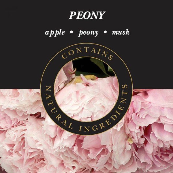 Peony Een prachtig boeket van pioenrozen, met een vleugje frisse rode appel, delicate muskus en bloemige bloemen van jasmijn, anjer en fluweelzachte roos.
